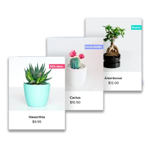 | Etiquetas automáticas de “En oferta” y “Agotado” | ✔ | ✔ | ✔ | |